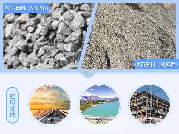 我國(guó)礦產(chǎn)資源豐富,許多山上開采下來的石料都可加工成沙子,能夠替代天然砂成為建筑、公路等領(lǐng)域的主要用砂。像鵝卵石、河卵石、青石、石灰石、石英石等等,這些石料在自然中存量非常大,本身其用途并不大,但是經(jīng)過加工,制成人工砂,其使用價(jià)值就得到了提高。石料制砂一般要經(jīng)過粗破、制砂、篩分、洗選等幾步作業(yè)流程。其工藝流程大概是這樣的:首先,石料由顎式破碎機(jī)進(jìn)行初步破碎,然后破碎成的的粗料由膠帶輸送機(jī)輸送至對(duì)輥制砂機(jī)進(jìn)行細(xì)碎,細(xì)碎后的石料進(jìn)振動(dòng)篩篩分出兩種石子,滿足制砂機(jī)進(jìn)料粒度的石子進(jìn)制砂機(jī)制砂,另一部分返料進(jìn)細(xì)破。進(jìn)對(duì)輥制砂機(jī)的石料一部分制成砂,經(jīng)洗砂機(jī)(可選)清洗后制成成品砂,另一部分進(jìn)制砂機(jī)再次破碎。整條石料制砂生產(chǎn)線設(shè)備主要由振動(dòng)給料機(jī)、鄂式破碎機(jī)、對(duì)輥制砂機(jī)、振動(dòng)篩、洗砂機(jī)、皮帶輸送機(jī)等設(shè)備組成。