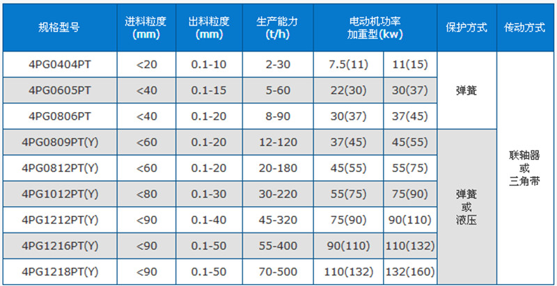 四輥破碎機(jī)技術(shù)參數(shù)